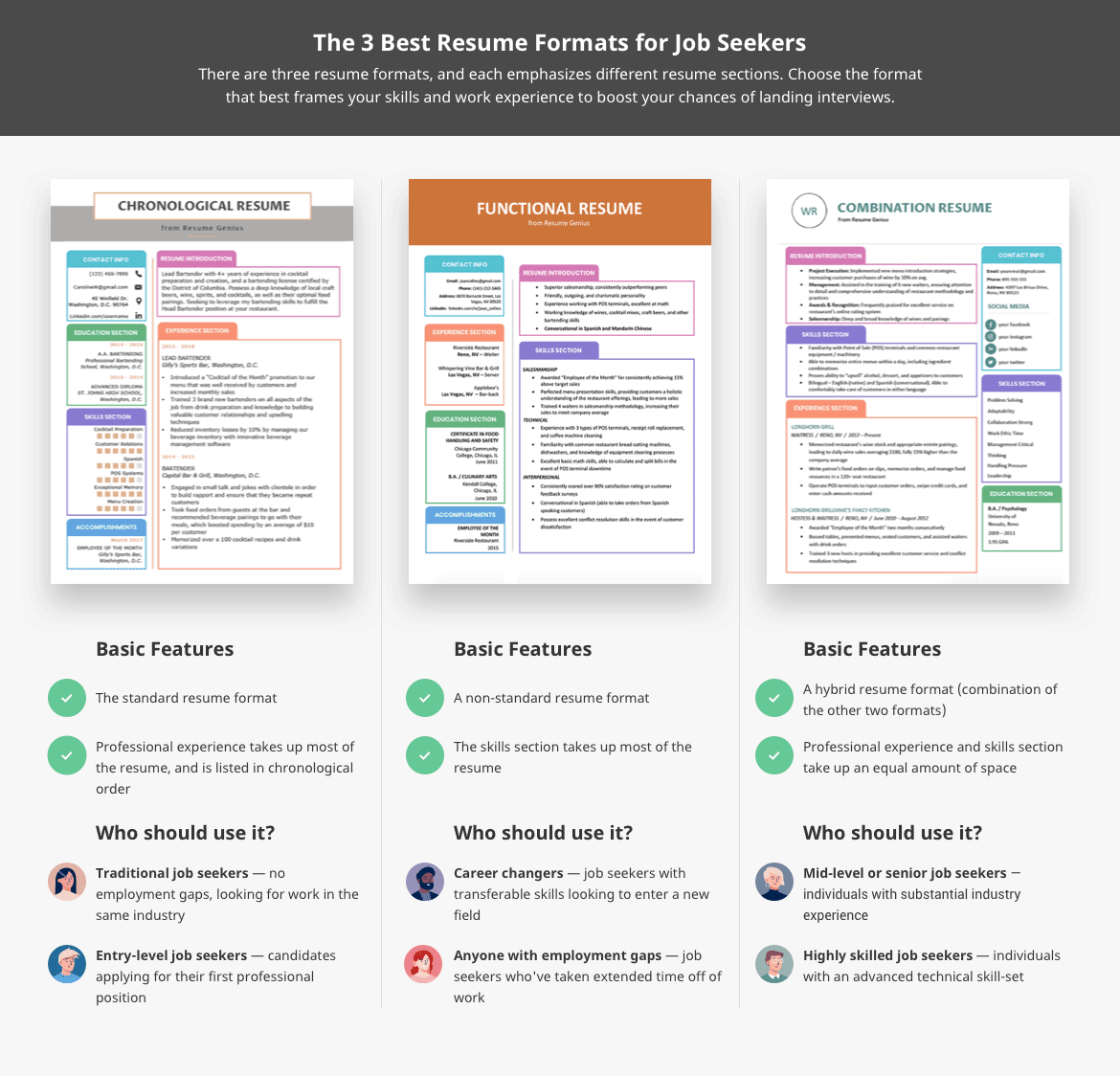 As we’ve already touched upon, job seekers have three professional resume formats to choose from when hunting for jobs: