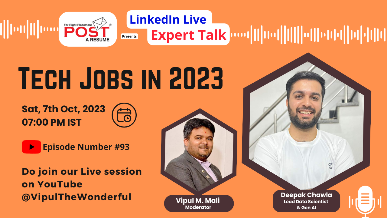 I’m excited to extend a personal invitation to our upcoming live event that could be a pivotal moment in your tech career journey. Join us for an enlightening session on “Tech Job in 2023” in our Expert Talk Episode 93. Mark your calendars for Saturday, October 7th, 2023, at 7:00 pm IST.