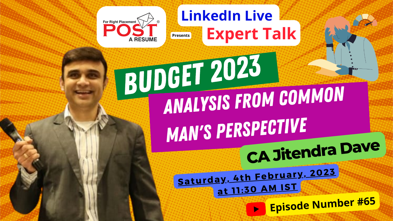 Expert Talk Live Session with CA Jitendra Dave on Budget 2023: Analysis from Common Man’s Perspective. We will also attend to your live questions, so submit your questions in this post’s comments now. See you in Live Talk. Click here, do like and turn on a live notification now to join our session https://youtube.com/live/lmUr-d7VJGQ