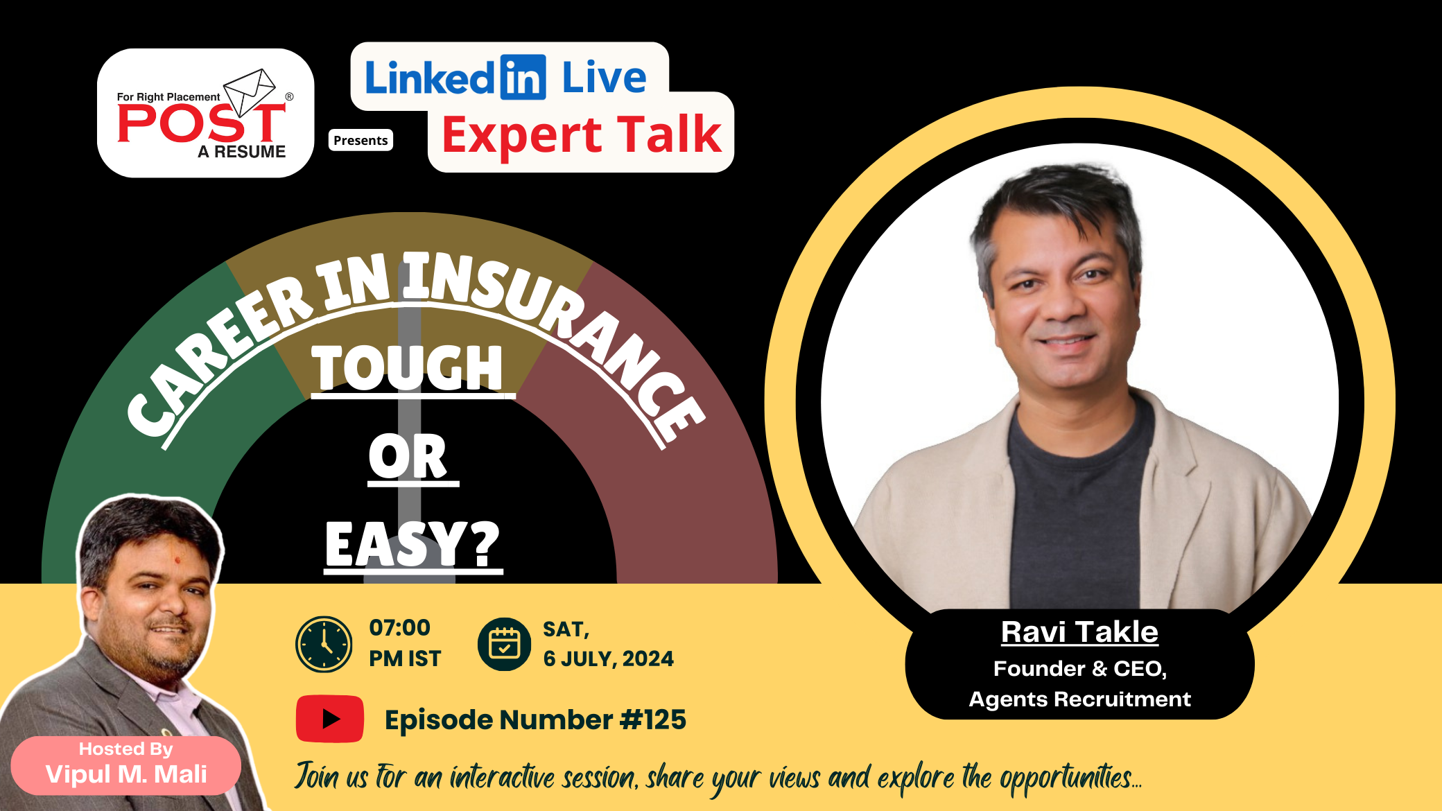 Join us for a live session with Mr. Ravi Takle to explore whether a career in insurance is tough or easy.