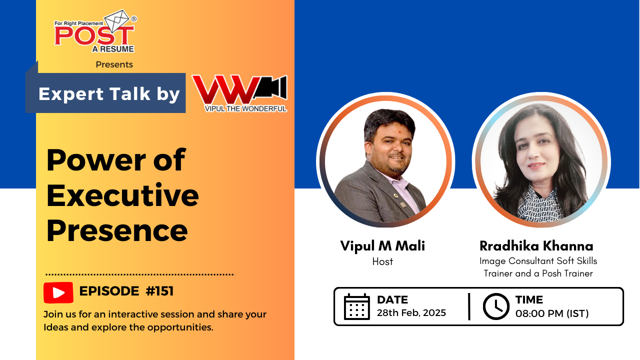 #ExecutivePresence #LeadershipSkills #PersonalBranding #ExpertTalkLive #VipulTheWonderful #ExpertTalks #postAresume #VipulMMali