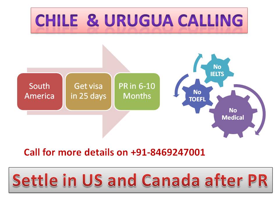 Contact us if you are looking for opportunity to get settle in American continent without IELTS, TOEFL or Medical test. We have some excellent offer for you for Chile wherein you will get PR without IELTS, TOFEL or Medical just in 45 days. Once you have PR of these country you can get visa free entry in USA and Canada. Call us for more details on +91-8469247001