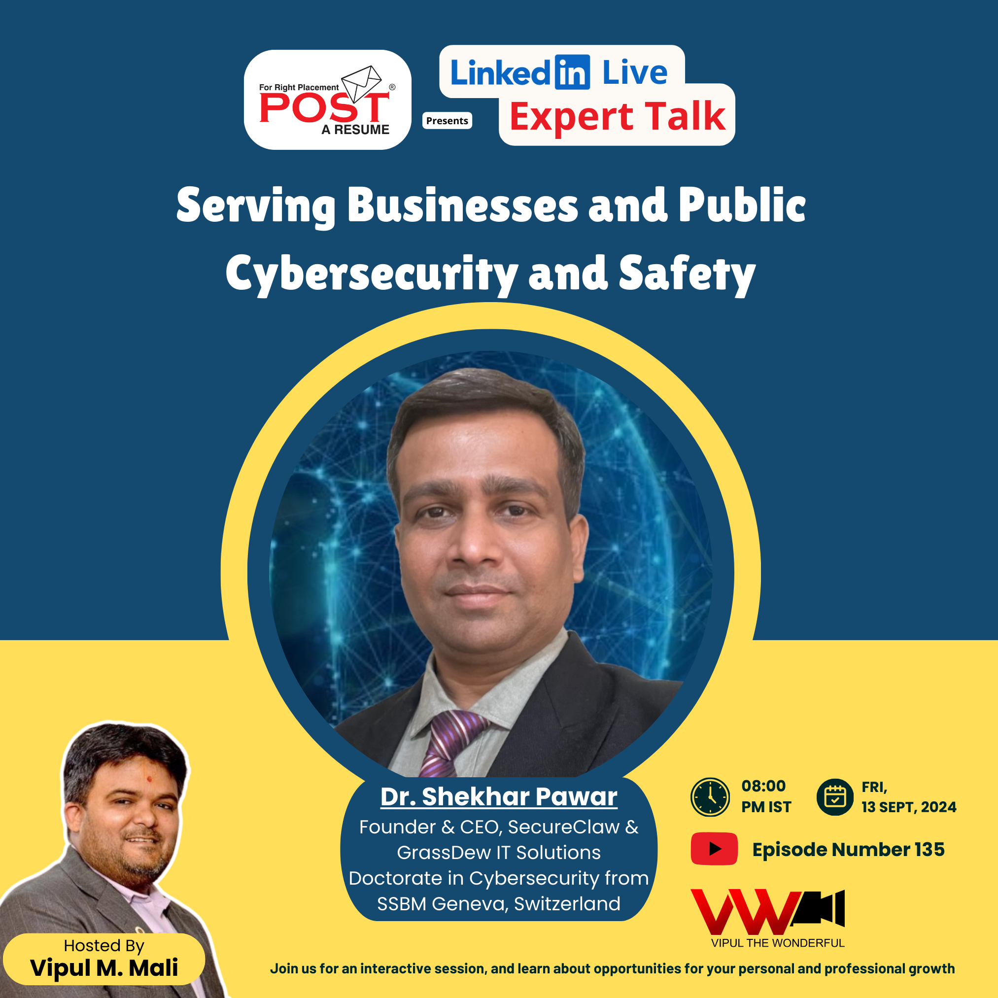 Expert Talk Ep. 135 with Dr. Shekhar Pawar on Serving Businesses and Public Cybersecurity and Safety