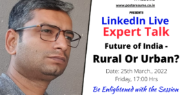 Expert Talk Series Live Session on this Friday, 25th March, 2022 at 5 PM. This week our guest is Ajit Vadher having experience of more than 20 years in Social Sector. He will speak on “Future Of India – Rural or Urban?”.…Read More »